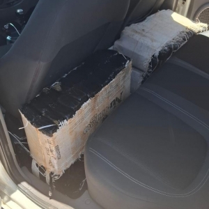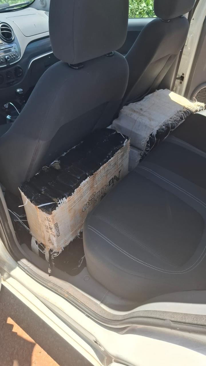 Após cerca de cinco minutos de perseguição, o motorista estacionou no acostamento, momento em que foi abordado pelos policiais e identificado. Durante a revista no veículo, os policiais encontraram invólucros revestidos de plástico preto e sacos rasgados, que, ao serem abertos, confirmaram o transporte de maconha, com o forte odor da droga característico.