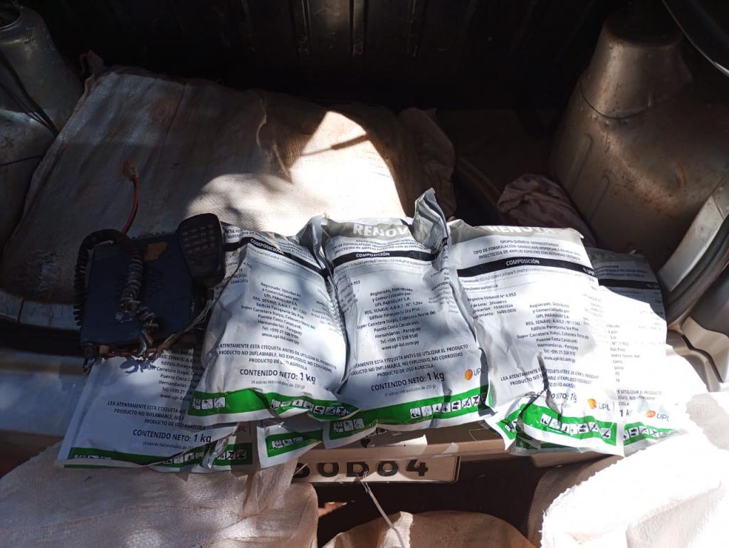 No interior do veículo, os agentes encontraram oito sacos contendo um total de 240 kg do pesticida "THIAMETHOXAN", distribuídos em 30 pacotes de 1 kg cada. O valor estimado da carga foi calculado em R$ 301.344,00. Além dos agrotóxicos, os policiais apreenderam um rádio comunicador acoplado ao veículo, utilizado possivelmente para se comunicar com outros envolvidos no esquema de contrabando.