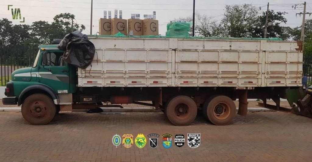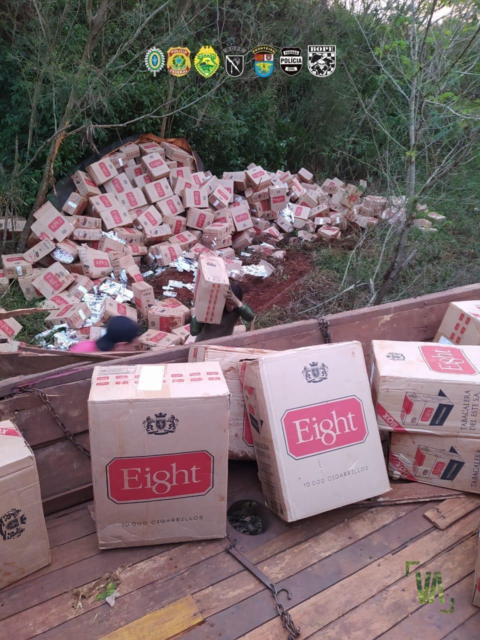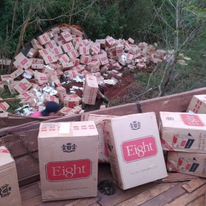 Na madrugada desta quinta-feira (03), ação policial orquestrada na região resultou na apreensão de 03 caminhões carregados com cigarro paraguaio. No total foram apreendidas cerca de 1500 caixas de cigarros paraguaio. Na tentativa de empreender fuga, um dos criminosos jogou o caminhão em uma ribanceira com seguidos capotamentos.