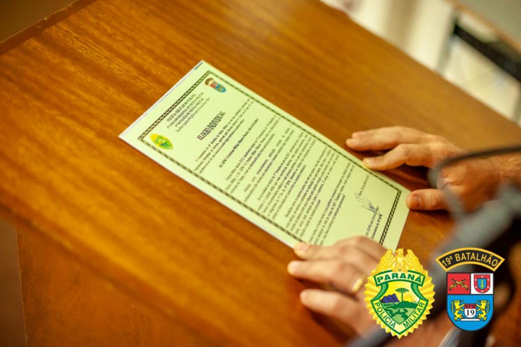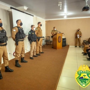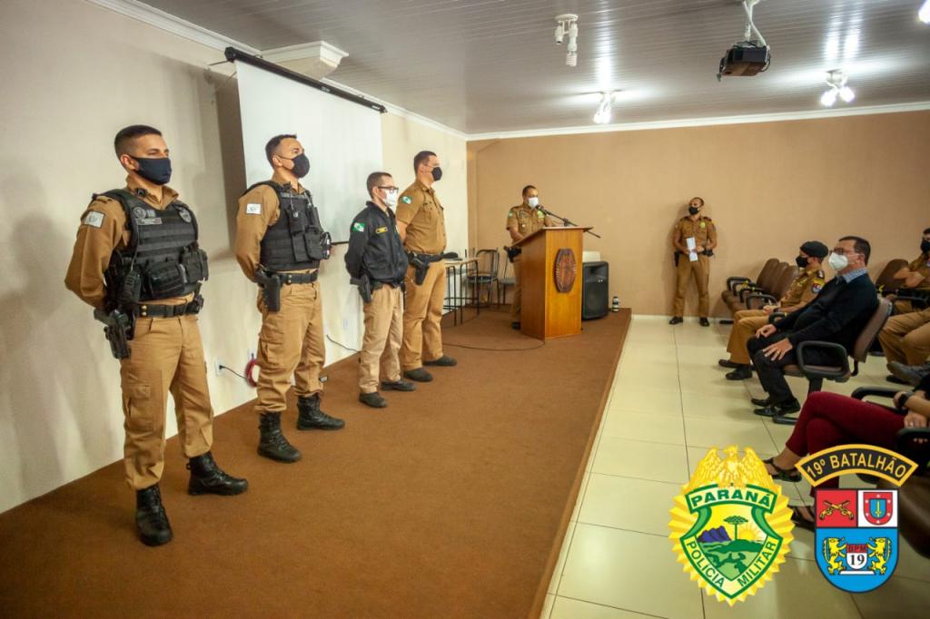 Também, foram homenageados policiais militares da unidade, pelo atendimento de ocorrência que resultou em confronto com os autores de um latrocínio, no último dia 21 de abril.