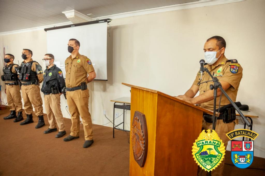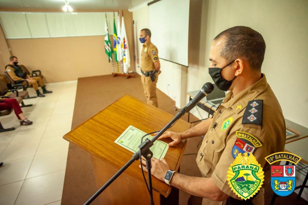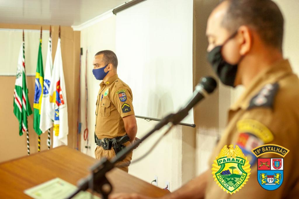 Na tarde desta quinta-feira, 29 de abril de 2021, o Comandante do 19° Batalhão de Polícia Militar, Ten.-Cel. José Osmar Novach, homenageou o Sd. Andrew, reconhecido como o Policial Militar destaque do mês de março de 2021, por sua produtividade destacada entre seus companheiros.