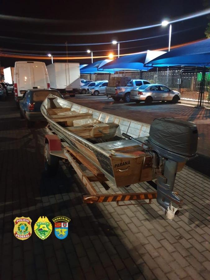 Ao se aproximar do local, visualizaram uma embarcação descarregando ilícitos paraguaios a um veículo VW/Gol modificado para transporte de contrabando.