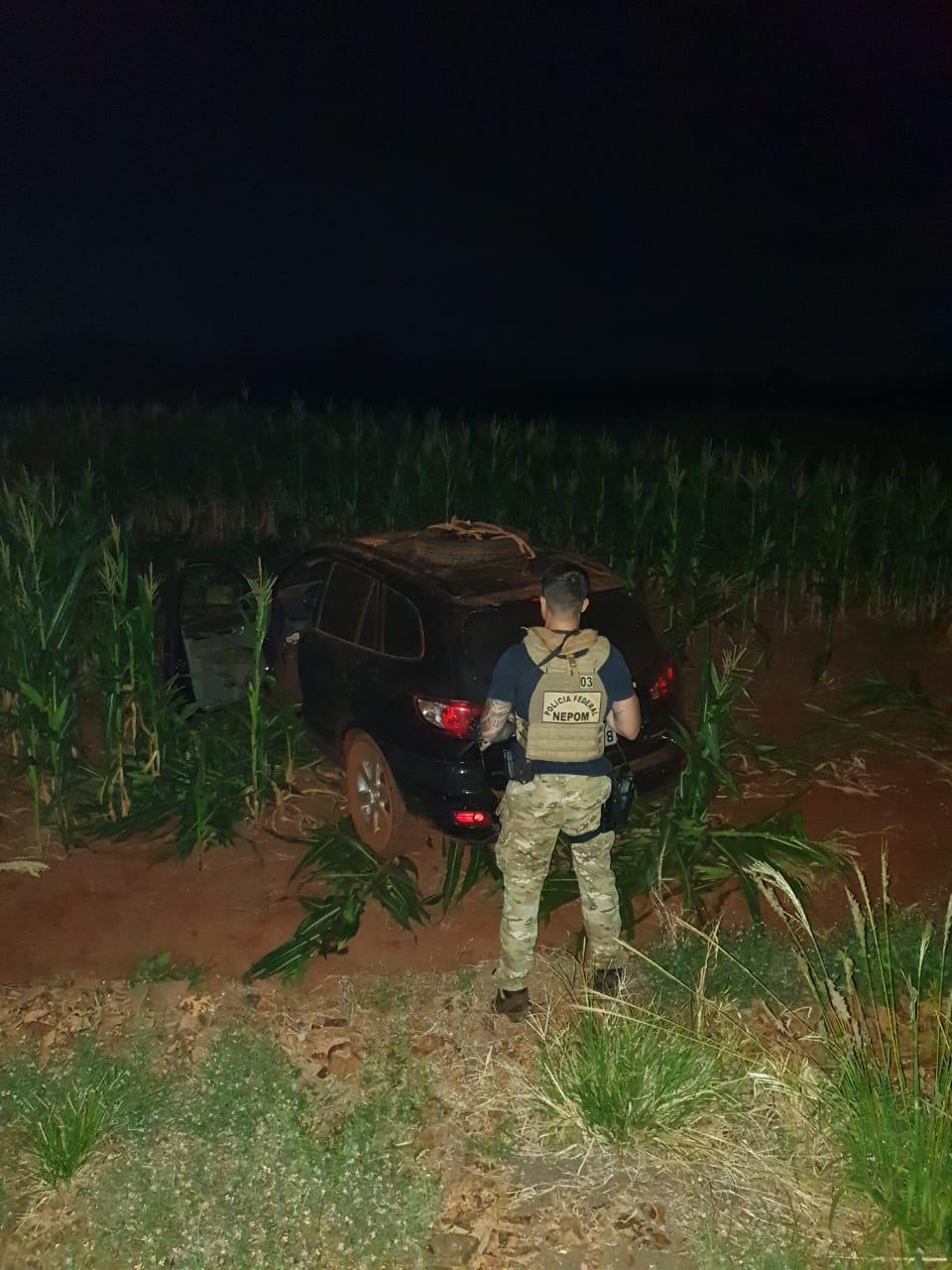 Durante a perseguição, dois veículos perderam o controle e seus motoristas empreenderam fuga pela lavoura de milho, não sendo localizados.