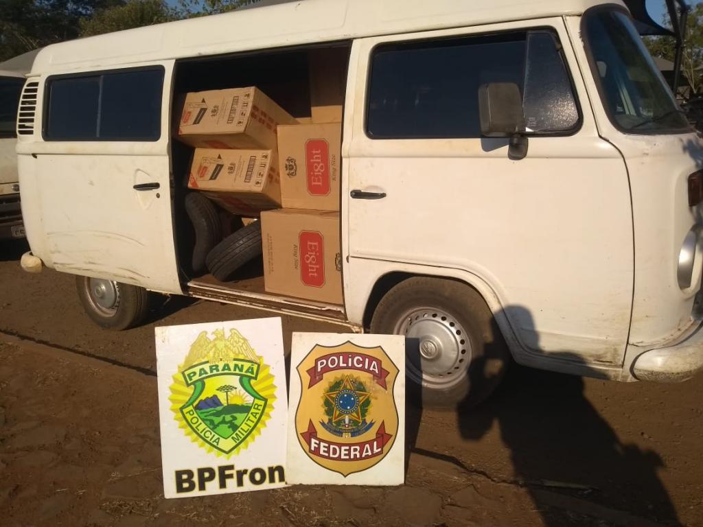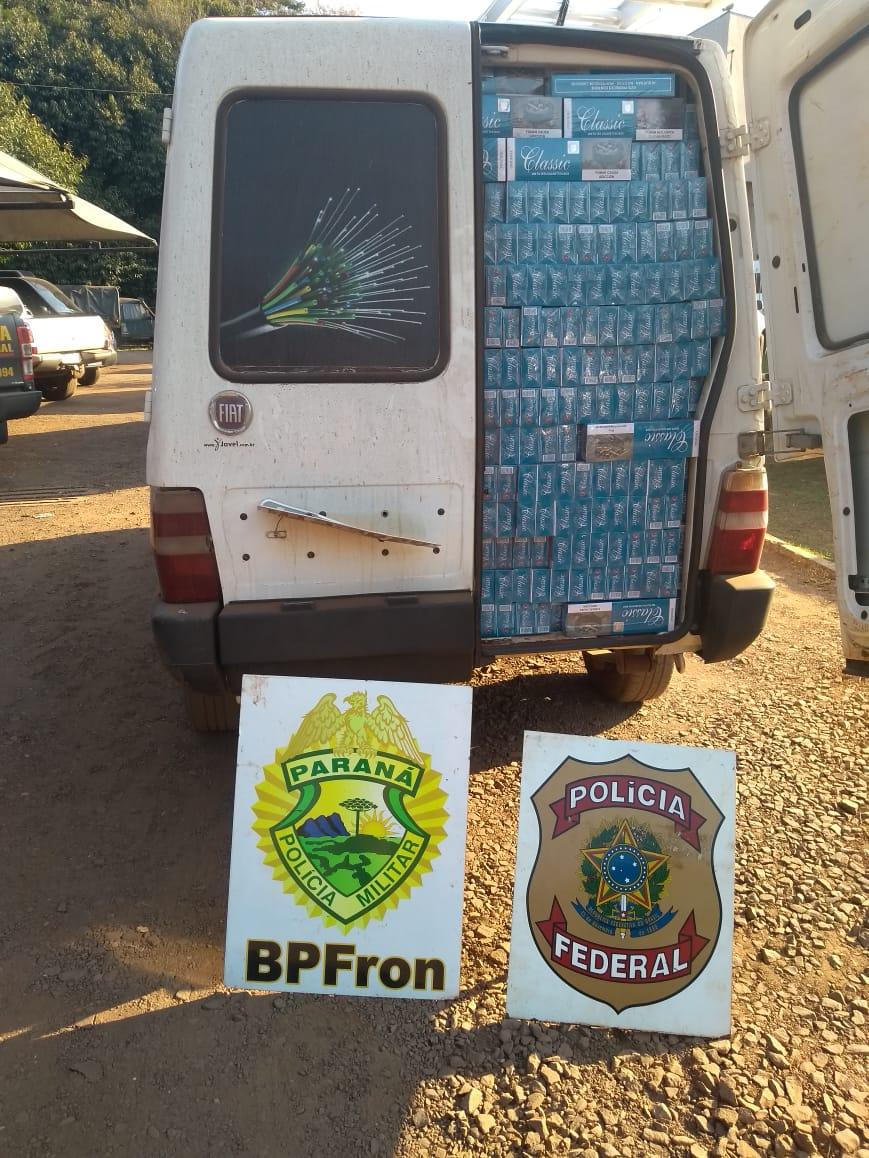No local foram apreendidos três veículos carregados com aproximadamente 60 caixas de cigarros contrabandeados do Paraguai, um prejuízo de aproximadamente R$200 mil à quadrilha criminosa.