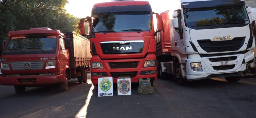 Foram apreendidos um Bitrem, uma carreta, um caminhão e uma picape, todos carregados com aproximadamente mil caixas de cigarros paraguaios, representando um prejuízo de aproximadamente R$3 milhões aos criminosos da região.