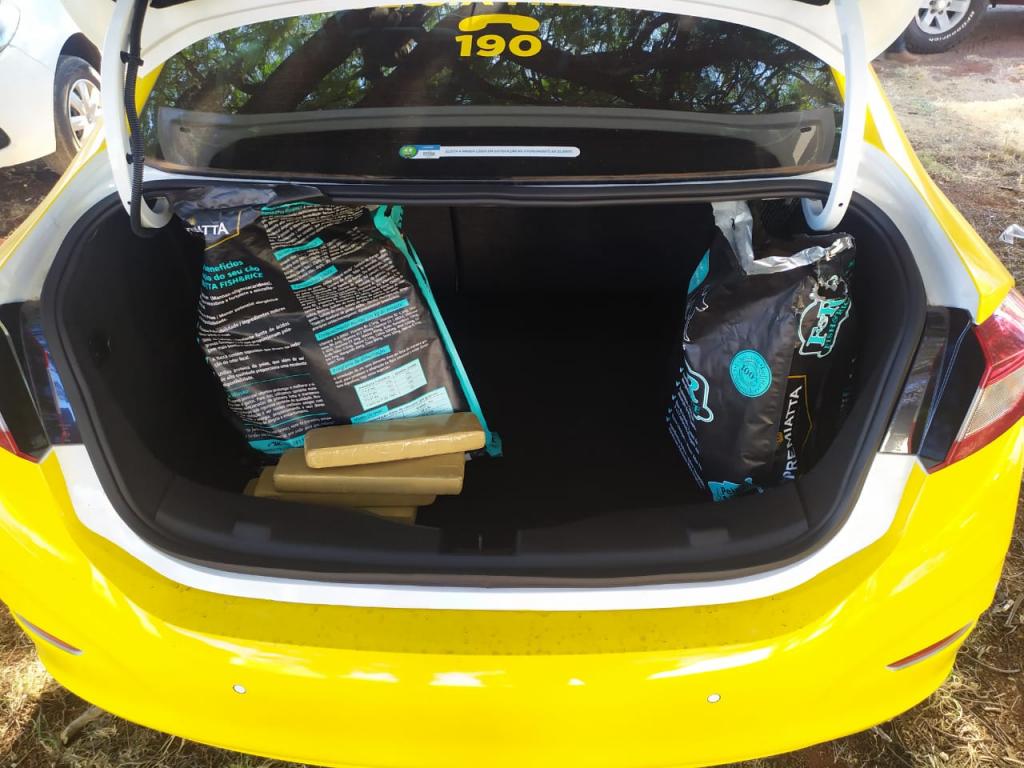 Na carroceria de seu veículo os polícias localizaram 35 kg de maconha, dividido em vários tabletes.