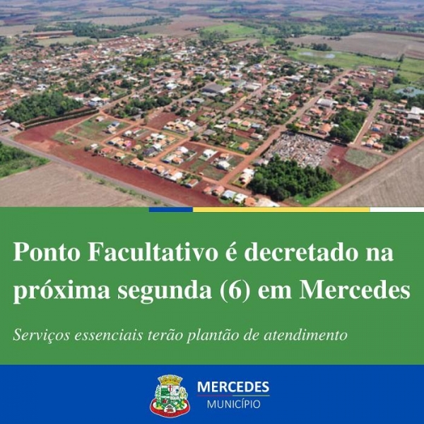 Mercedes terá ponto facultativo nas repartições públicas municipais da administração direta e indireta na próxima segunda-feira, dia 6 de setembro, em virtude do Feriado da Independência do Brasil, celebrado no dia 7.