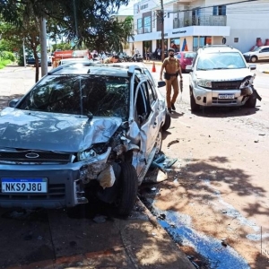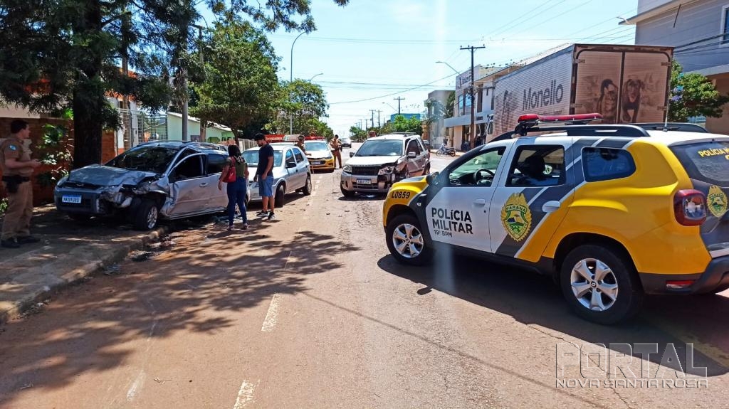 O Ford EcoSport, o Fiesta e um Celta se envolveram em uma colisão na tarde desta segunda-feira no bairro São Francisco por volta das 14h30.