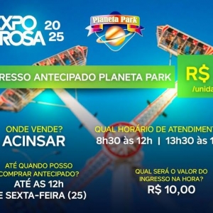 Os ingressos para o parque podem ser adquiridos antecipadamente, com desconto, na sede da Associação Comercial, Industrial e Agropecuária de Nova Santa Rosa (Acinsar) até o meio-dia da sexta-feira (25). Para os demais dias, o horário de atendimento é das 8h30 às 12h e das 13h30 às 18h. O valor antecipado é R$ 8,00. Durante as festividades, o valor será R$ 10,00.