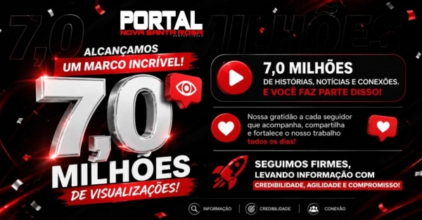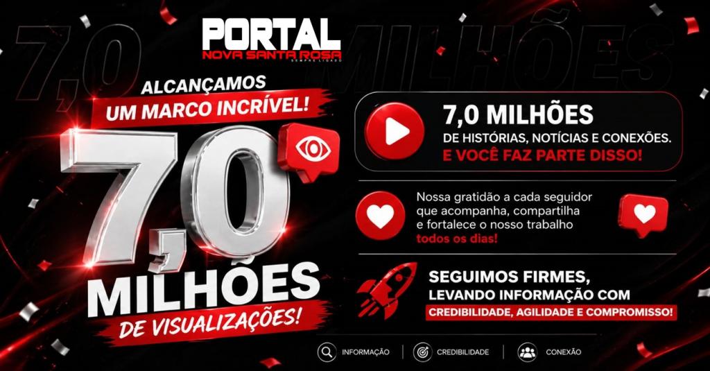 O Portal Nova Santa Rosa atingiu um novo marco em sua trajetória digital ao ultrapassar a marca de 7 milhões de visualizações em seus conteúdos no Instagram, somando notícias, histórias e conexões com o público ao longo do tempo. O número reforça o crescimento contínuo do veículo e sua forte presença nas plataformas digitais.