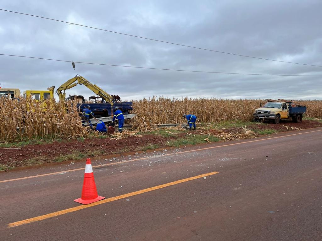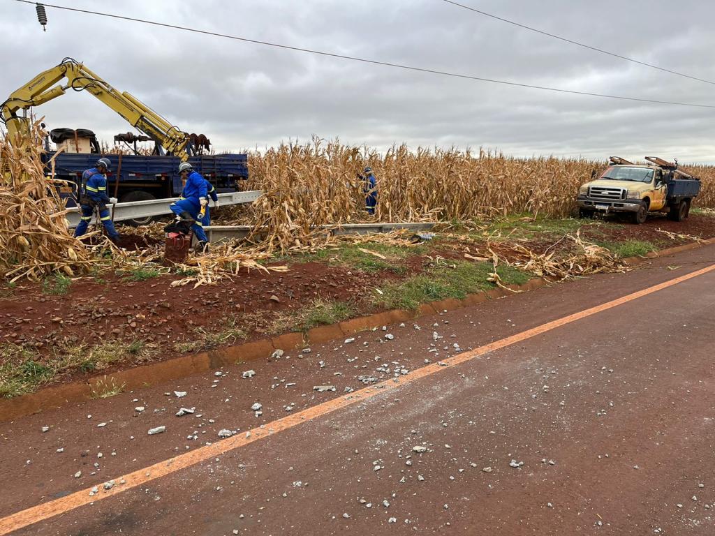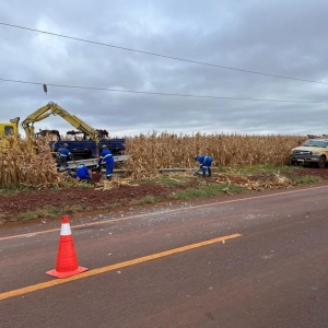 Uma empresa terceirizada da Copel está no local neste momento fazendo a troca do poste, no acidente três postes foram danificados, um quebrou e dois tiveram a cruzeta afetada e terá que ser trocada, os trabalhos devem se estender durante toda a manhã.