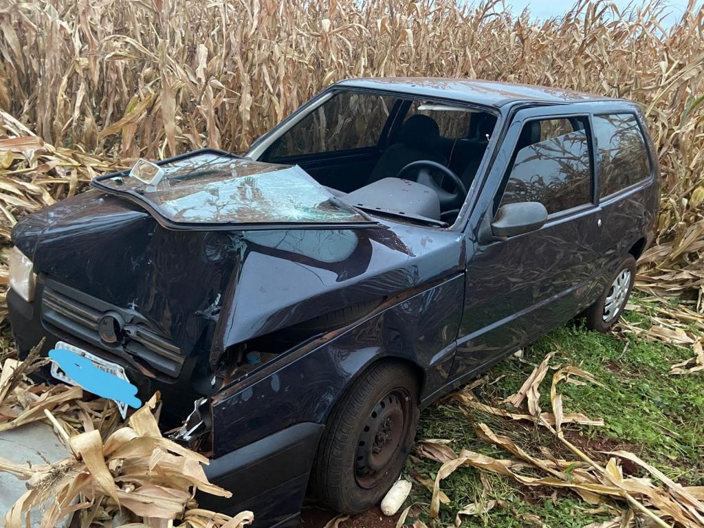 Um Fiat Uno colidiu contra um poste na madrugada deste domingo na PR-589, proximidades do KM 5 em Novo Sarandi, Toledo.