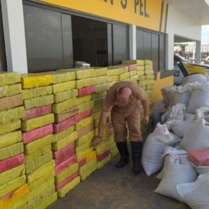 Diante do nervosismo do condutor, foi feita uma revista minuciosa na carga e após tirar alguns sacos com sementes, foi constatado que em seu interior continha fardos de “Maconha” envoltos com fita adesiva.