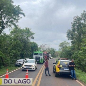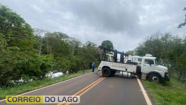 A rodovia PR-488 permaneceu totalmente interditada no trecho da Ponte Queimada, limite entre os municípios de Santa Helena e Diamante do Oeste, nesta quarta-feira (1º), para a remoção de um caminhão tombado. A interdição começou às 14h40.