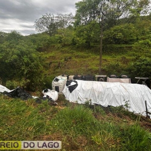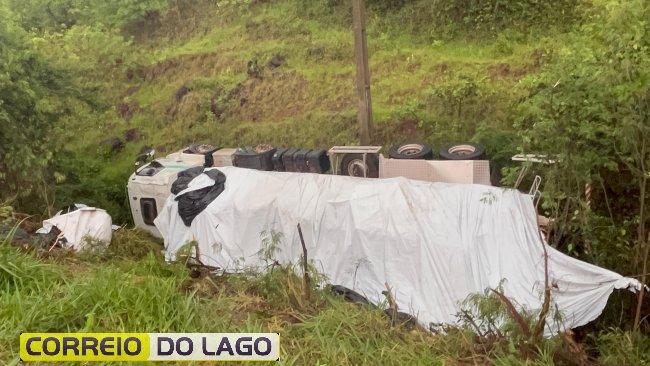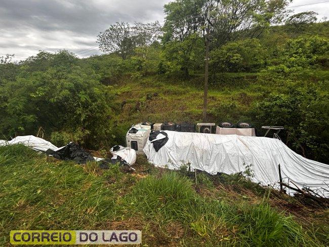 O veículo transportava ração e tombou ainda na madrugada da terça-feira (30) em uma ribanceira às margens da rodovia. O motorista não se feriu, e o acidente causou apenas danos materiais.