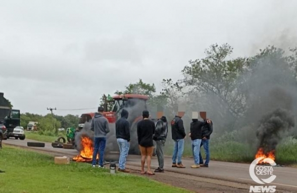 Um grupo de pessoas, entre eles agricultores e caminhoneiros, bloquearam a rodovia PR 495, entre os municípios de Pato Bragado e Entre Rios do Oeste, nesta tarde de segunda-feira (31).