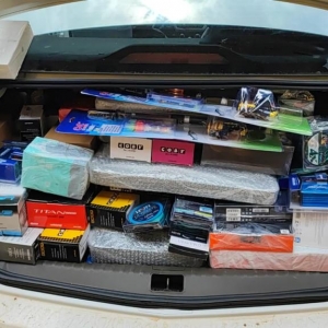 Foram encontrados no carro:Ipads e Celulares, que seguem discriminadas: - Drone DJI Mine 2 SE - Ipad - Mac Bock - Apple Watch - Apple Pencil - Redmi 12C - Note 11 PRO - Note 11 S - Note 11 - Note 10 S - Note 10A - Redmi 9I - Poco XS - Moto G22 - Moto G30 - Redmi A1 - GO PRO - Fones de Ouvido - HD - Placa de Vídeo - Alto Falante - Perfumes - Módulo - Toca CD - Multimidia Idea - Câmera Cano EOS R7. Dentre outros aparelhos eletrônicos, cartões de memória e artigos de pesca.