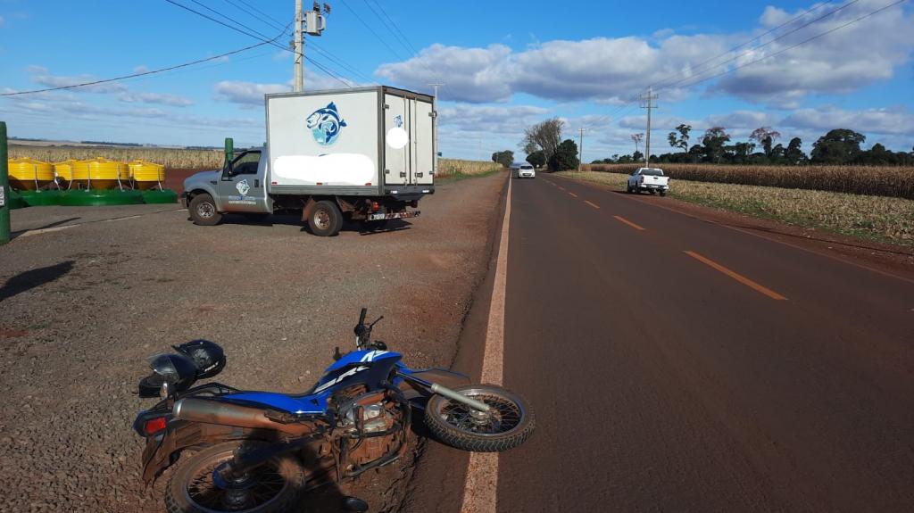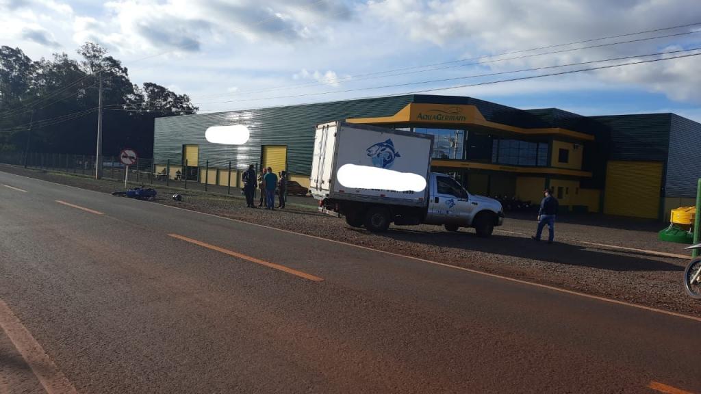 Um acidente aconteceu na tarde desta terça-feira na PR-589 entre Nova Santa Rosa e Novo Sarandi envolvendo uma moto Honda Bros com placas da cidade, conduzida por um rapaz de 21 anos, morador de Nova Santa Rosa que resultou com ferimentos leves e um Ford/350 com placas de Toledo, conduzido por um homem de 35 anos que não teve ferimentos.