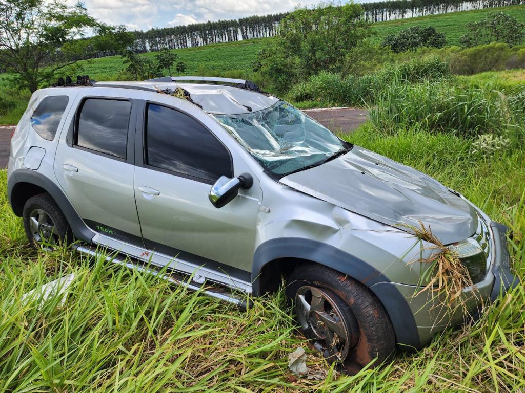 No KM 42da rodovia estadual, o condutor perdeu o controle da direção saiu da pista de rolamento e após atingiu uma placa existente lado esquerdo da via, base seu sentido de trafego, capotando o Renault.