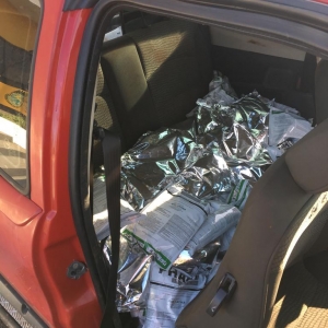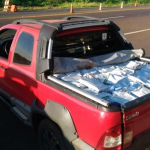 Na caçamba do veículo, estavam os agrotóxicos contrabandeados do Paraguai.