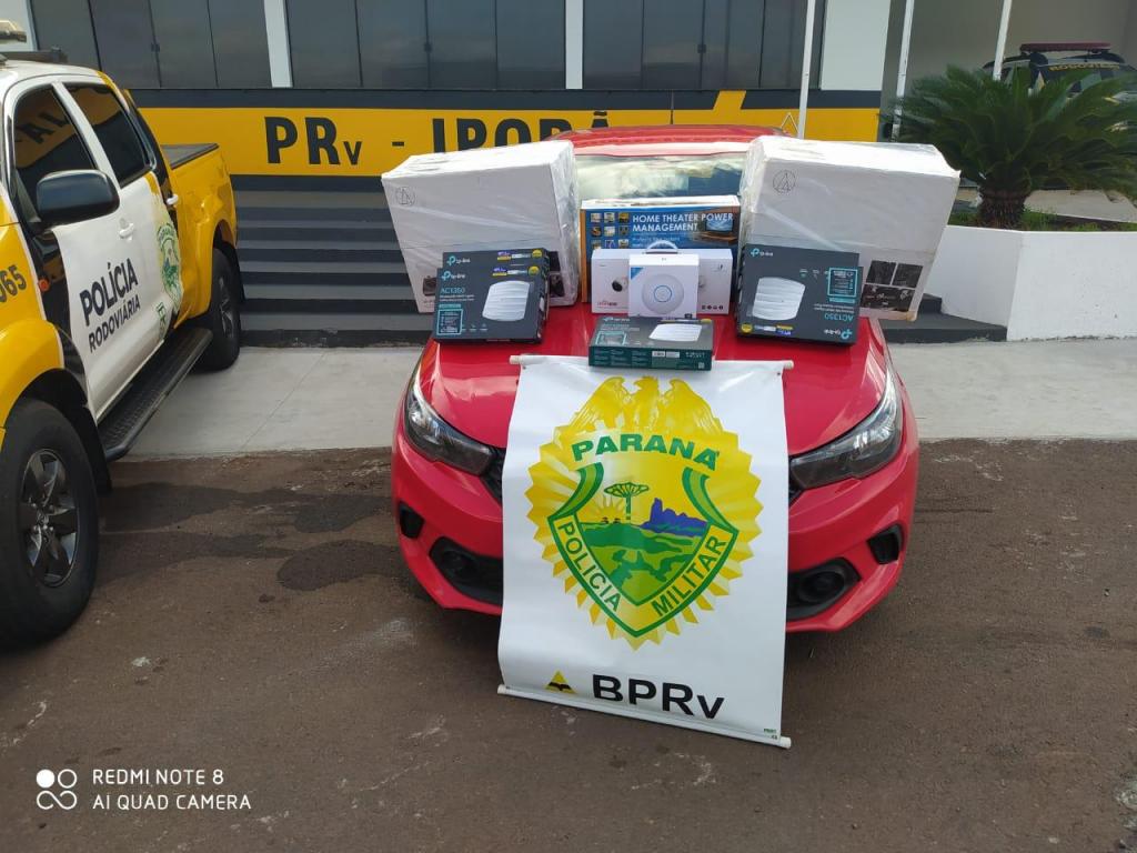 Diante dos fatos, as mercadorias foram apreendidas juntamente com o veículo que após conferência totalizaram: 01 (um) jogo de câmeras de segurança, da marca Unifi, modelo UVC-G3 AF; 02 (duas) caixas Audio Technica, modelo AT-LP 120XUSB; 05 (cinco) aparelhos roteadores da marca TP-Link, modelo AC-1350; 01 (um) aparelho roteador da marca Unifi, modelo APAC Lite; 01 (um) aparelho Home Theater, da marca Power Management.
