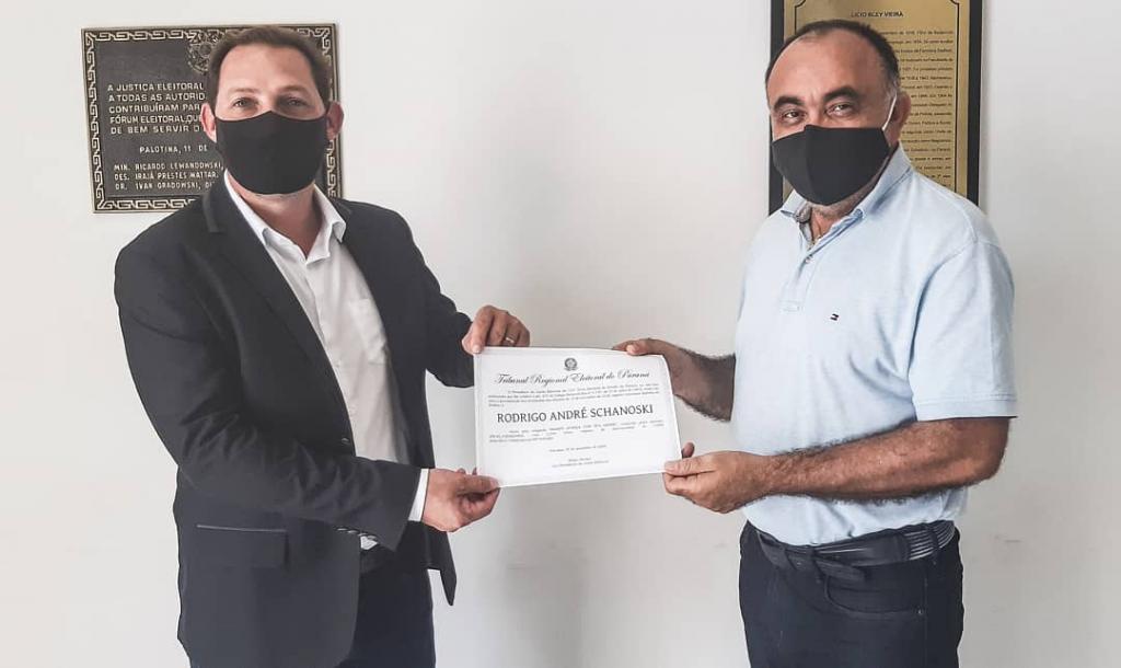 Foram diplomados às 12h20 desta sexta-feira (18), em cerimônia realizada no Fórum Eleitoral de Palotina, o prefeito de Maripá, Rodrigo Schanoski (PL) e a vice-prefeita, Janaína Müller Geraldi (PP). A diplomação ocorreu de forma individualizada e observando todas as normativas sanitárias relacionadas ao coronavírus.