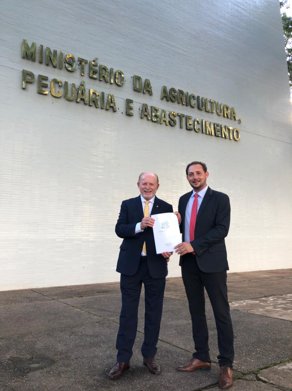 Outra pauta importante foi no Ministério da Agricultura, Pecuária e Abastecimento com a ministra Tereza Cristina e o secretário-executivo, Marcos Montes. Rodrigo esteve acompanhado do deputado federal Vermelho para buscar uma parceria para a viabilização de recursos para a recuperação completa da Estrada do Colono, também conhecida como Caminhos do Saber. Outra tratativa foi sobre a liberação de duas retroescavadeiras, que já estão aprovadas e devem ser liberadas no mês de abril, quando abre o orçamento deste ano.