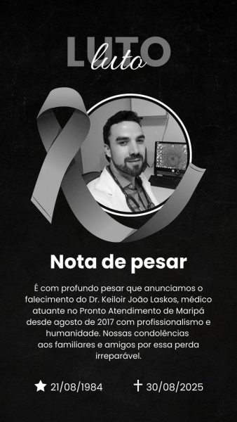 É com profundo pesar que comunicamos o falecimento do Dr. Keiloir João Laskos, médico atuante no Pronto Atendimento de Maripá, ocorrido em 30/08/2025.