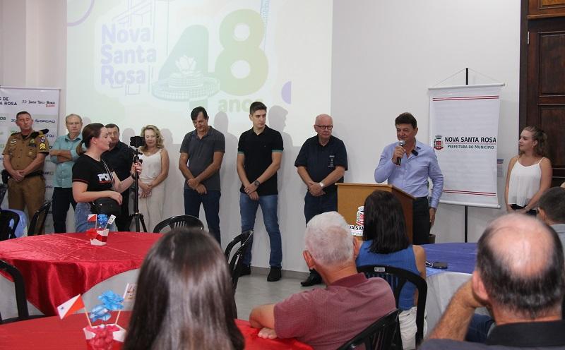 Na manhã de hoje quarta-feira (13), foi feito o lançamento oficial da programação de aniversário de 48 anos de emancipação político-administrativa de Nova Santa Rosa. Participaram do evento o prefeito, Norberto Pinz; vice-prefeito Noedi Hardt; secretários municipais; diretores; presidente da Câmara de Vereadores, Ari Schmidt; demais vereadores; lideranças e representantes da comunidade, dos clubes e entidades religiosas que fazem parte da programação de aniversário, além da imprensa regional, sendo que o Portal Nova Santa Rosa esteve presente transmitindo a realização do evento.