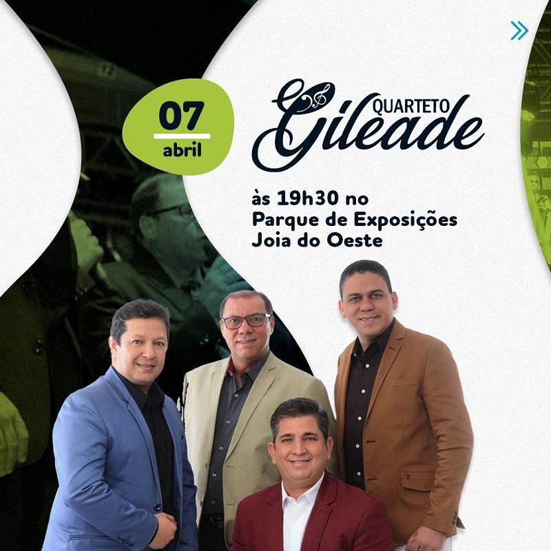 07/04 – Culto Fraternal com apresentação do Quarteto Gileade no Centro de Eventos Joia do Oeste a partir das 19h30;