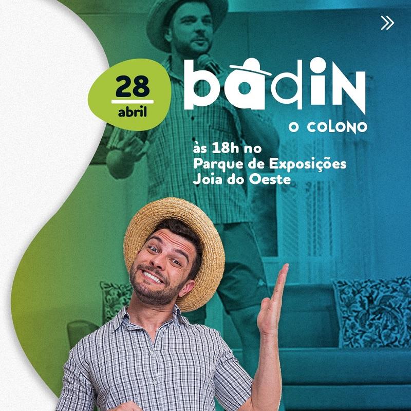 28/04 – Show gratuito de comédia com Badin o Colono a partir das 18h.