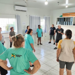 A aula inaugural contou com a presença da secretária de Saúde, Dra. Lilian Fischer Muller, do diretor de Esportes, Paraguayo Benite, do instrutor Marcelo Martin, da chefe de Serviços de Assistência Farmacêutica, Paula Hein, da chefe dos Serviços de Assistência Médica, Graziele Welter Montiel, e da coordenadora da Atenção Básica, enfermeira Kellen Rohling.