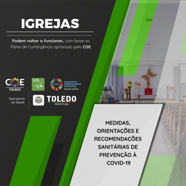 O Comitê Operacional de Emergências (COE), liberou a volta das atividades religiosas após a entrega de um plano de contingência feito pela AME Toledo e aprovado pelo COE, depois de uma série de discussões.