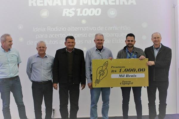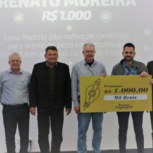 Destas, foram selecionadas e premiadas: terceiro lugar com prêmio de R$ 1.000,00 para Renato Moreira com a Ideia de rodízio alternativo de caminhão para acerto de peso em embarques de produtos agrícolas na filial de Eldorado MS.