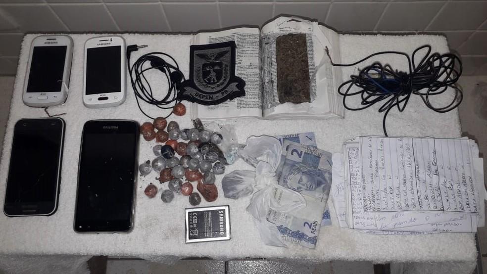 Durante o serviço na galeria de triagem, a equipe encontrou, além da droga dentro da bíblia, quatro celulares, uma bateria de aparelho celular, um carregador, um fone, dinheiro e anotações relacionadas ao crime organizado, segundo o Depen.