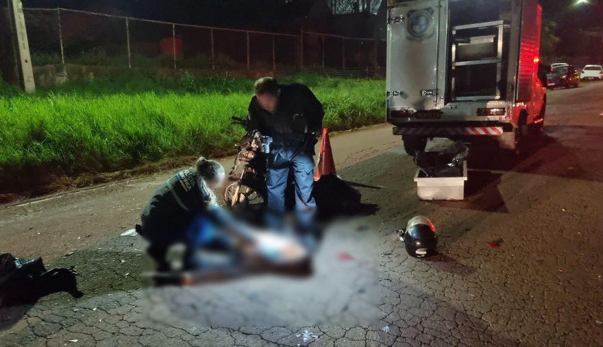 Um grave acidente envolvendo duas motocicletas tirou a vida de um jovem na marginal da BR-277, na madrugada dessa segunda-feira (12). A vítima fatal foi identificada como João Mário de Oliveira dos Santos, de 25 anos.