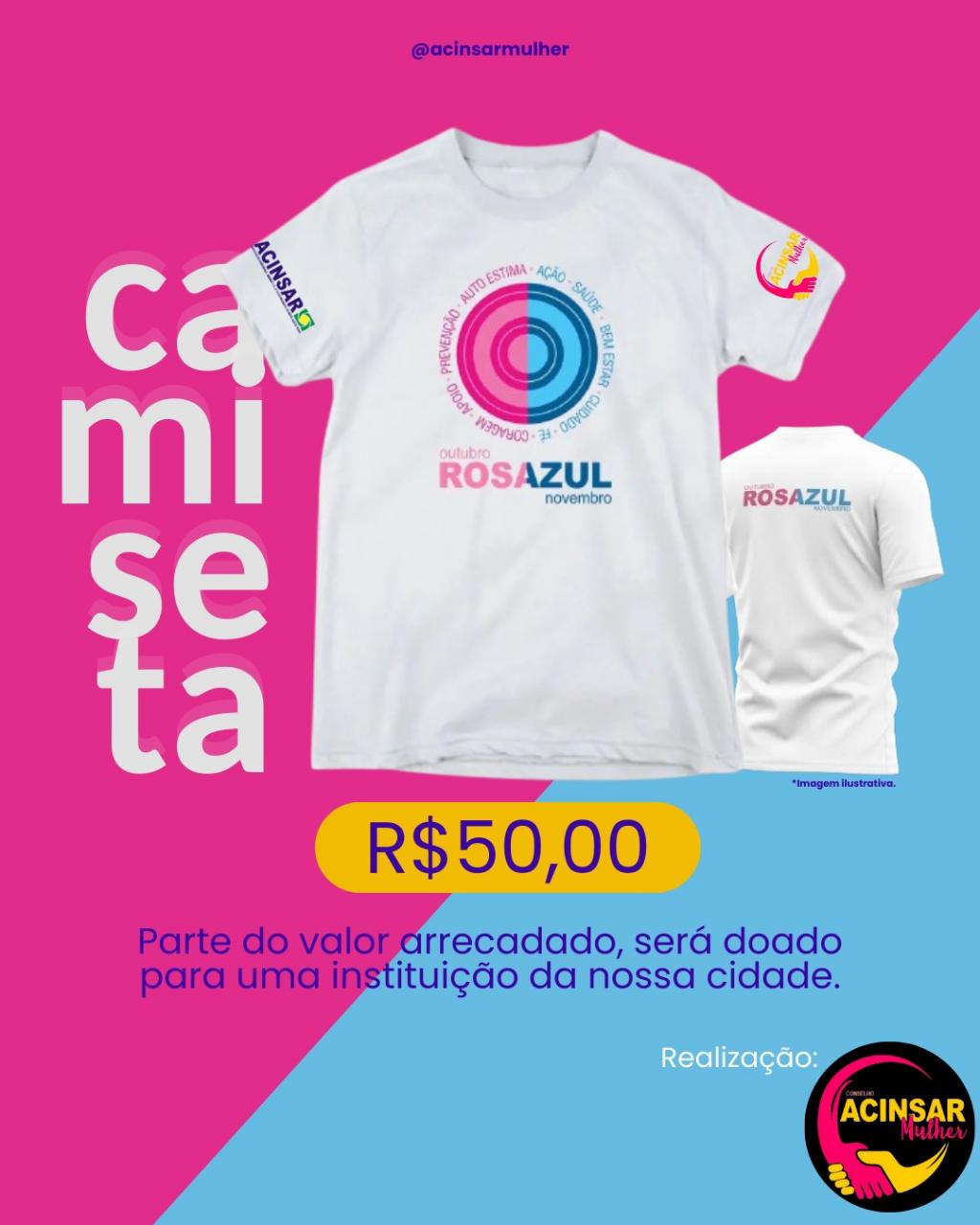 Vista essa ideia e garanta sua camiseta diretamente na Acinsar! As camisetas estão disponíveis pelo valor de R$ 50,00, na cor branca (à pronta entrega) e também na cor preta (sob encomenda até o dia 20 de setembro de 2025).