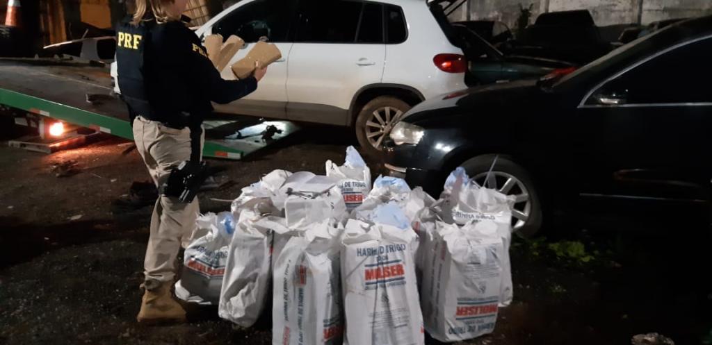 Também na noite de ontem, em Prudentópolis, região dos Campos Gerais, outra equipe da PRF apreendeu 296 quilos de maconha em um veículo Volkswagen Tiguan. Com placas falsas, o carro havia sido roubado em Passo Fundo (RS), no mês passado.