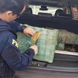 A Polícia Rodoviária Federal (PRF) apreendeu 193 quilos de maconha que era transportado em carro roubado nesta segunda-feira (24), em Toledo.