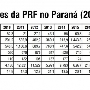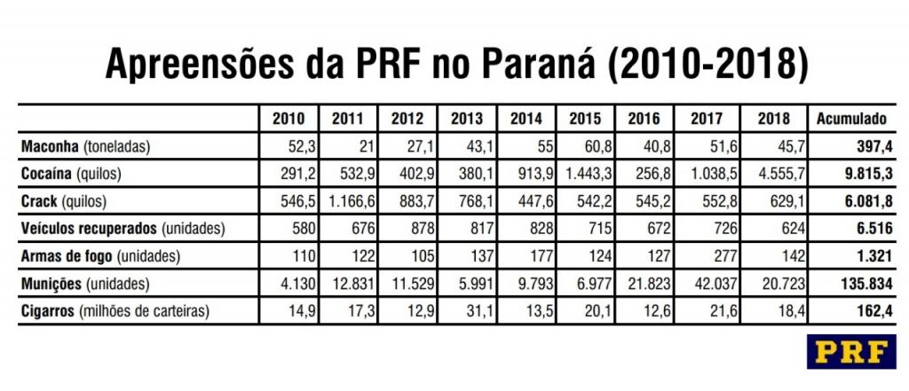 A PRF recuperou ainda, no mesmo período, mais de 6,5 mil veículos roubados e apreendeu 162,4 milhões de carteiras de cigarro contrabandeadas do Paraguai em território paranaense.