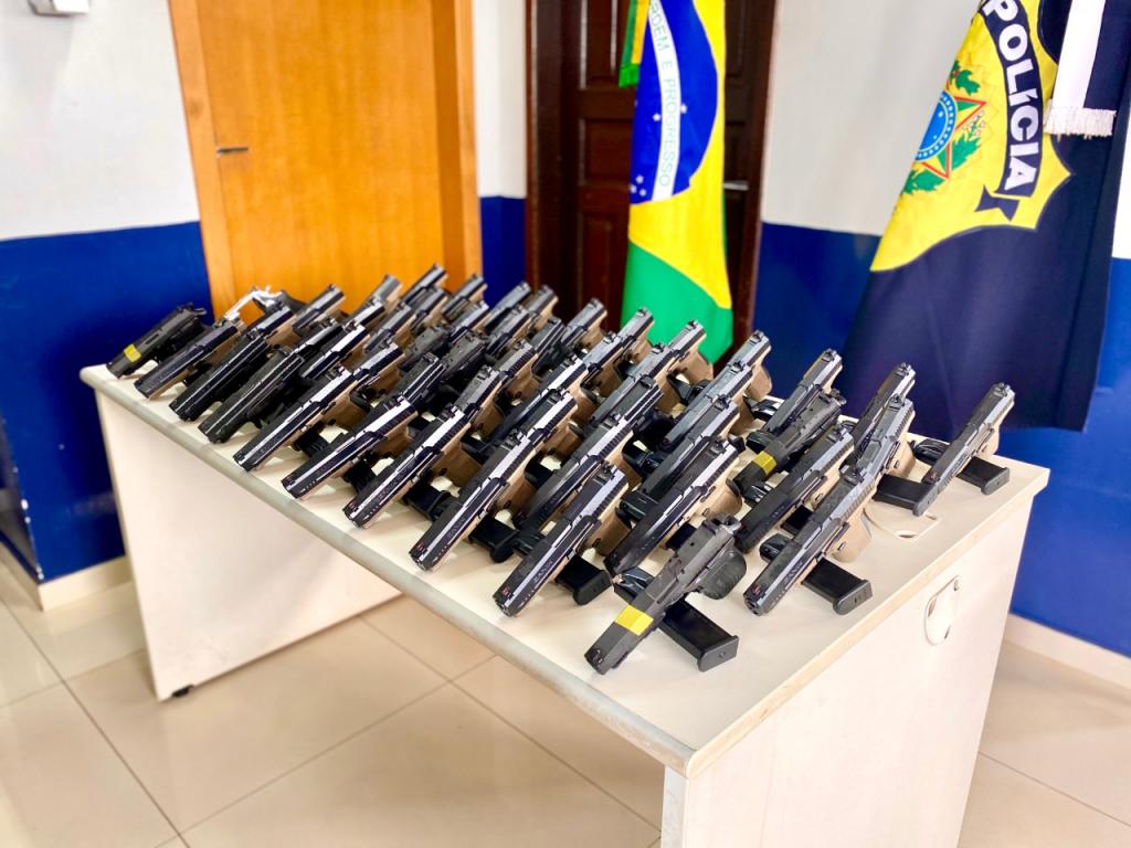 Acondicionadas dentro de sacos plásticos, haviam cinco pistolas calibre 9mm da marca Bersa, de origem argentina; cinco pistolas 9mm, marca HS de origem croata; 41 pistolas 9mm da marca Canik TP9, de origem turca; além dos 57 carregadores sobressalentes.