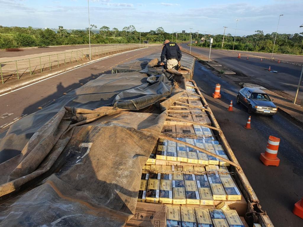 Os agentes, entretanto, solicitaram que ele abrisse a lona e ao fiscalizarem a carga encontraram cerca de 500 caixas de cigarro de origem paraguaia debaixo do milho.