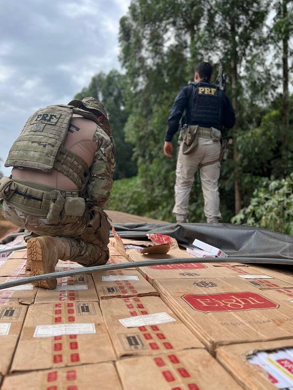 A Polícia Rodoviária Federal apreendeu, na manhã de hoje (15), 300 mil maços de cigarros contrabandeados.