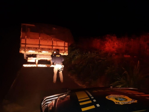 A carga contrabandeada do Paraguai estava em um caminhão, abandonado às margens da BR-272, após uma pane mecânica.