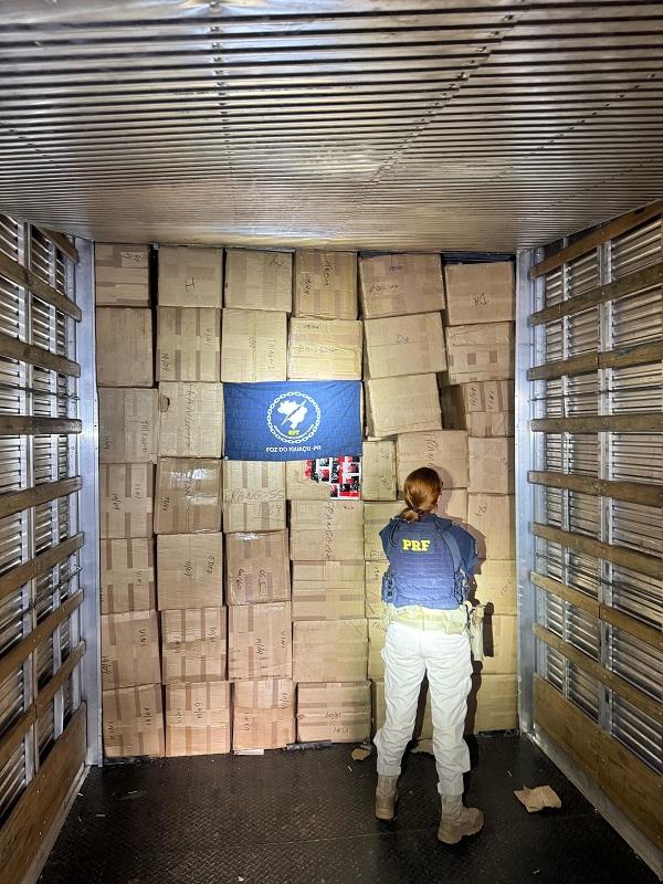 A PRF apreendeu na manhã desta terça-feira (22) um caminhão carregado com cerca de 3 mil celulares sem o devido desembaraço aduaneiro, durante fiscalização na BR-277, em Céu Azul (PR). A mercadoria estava escondida em um compartimento oculto no semirreboque do veículo.