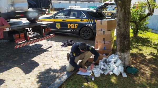 A Polícia Rodoviária Federal apreendeu mais de 300 quilos de medicamentos e anabolizantes contrabandeados, além de maconha líquida numa caminhonete na segunda-feira (09), em Palmeira (PR).