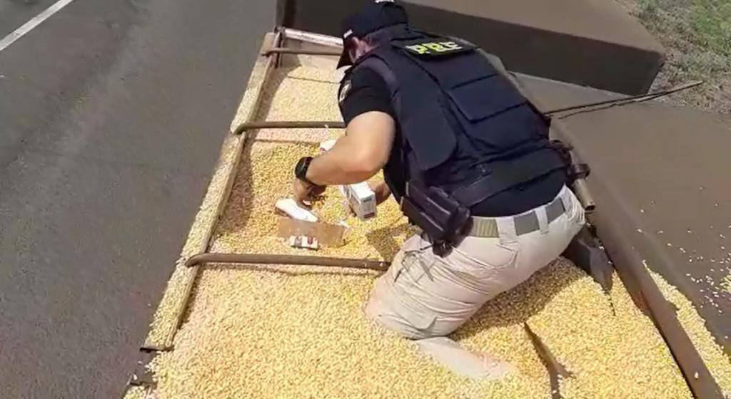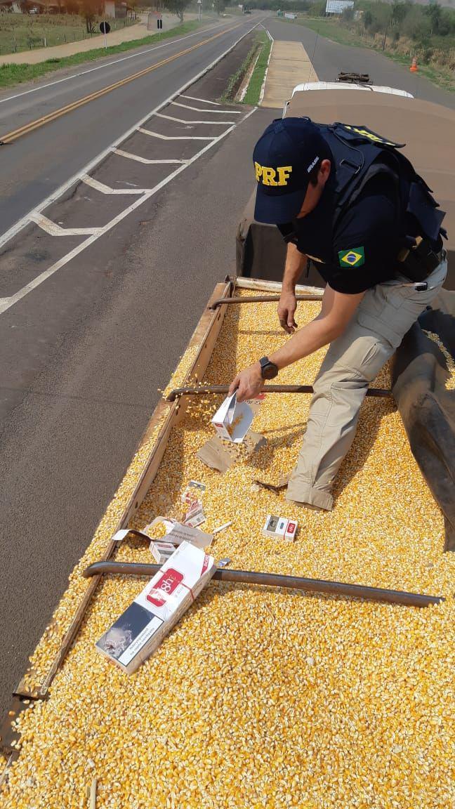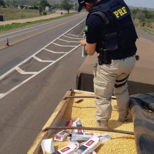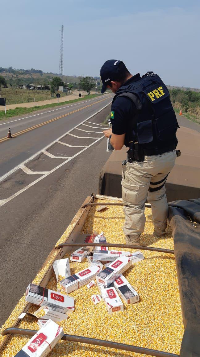 Quando os policiais rodoviários federais começaram a retirar as lonas dois dois semirreboques, o homem confessou que transportava cigarros contrabandeados do Paraguai.