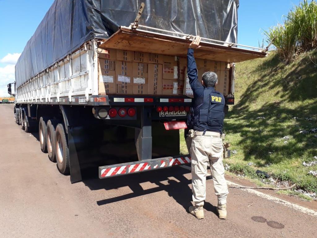 Avaliada em R$ 2,1 milhões, a carga contrabandeada do Paraguai era transportada em uma carreta, abordada na BR-163.