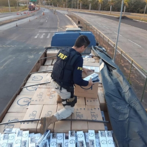 No amanhecer desta segunda-feira (26), por volta das 06h15, a Polícia Rodoviária Federal (PRF) apreendeu em Guaíra uma carreta carregada de cigarros de origem paraguaia.