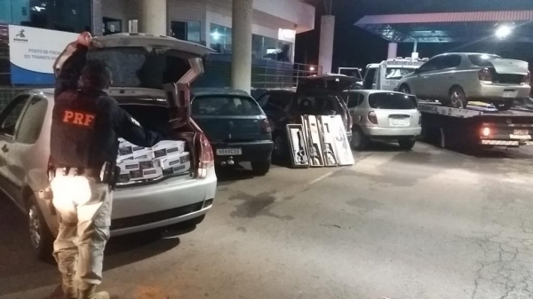 A Polícia Rodoviária Federal (PRF) apreendeu grande quantidade de mercadorias contrabandeadas do Paraguai nesta quarta-feira (30) em Guaíra. Os condutores dos veículos empreenderam fuga por ocasião da abordagem.